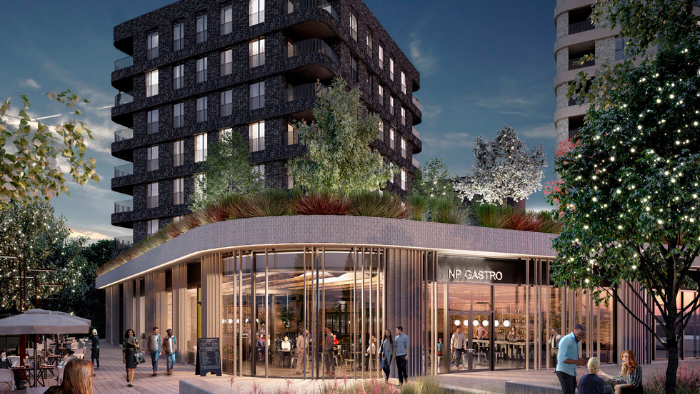 The project consists of a new residential mixed-use development comprising 5 new construction buildings to provide 654 new homes plus the associated car and cycle spaces, a replacement nursery, retail space and highways improvements, open space, hard and soft landscaping and public realm works.